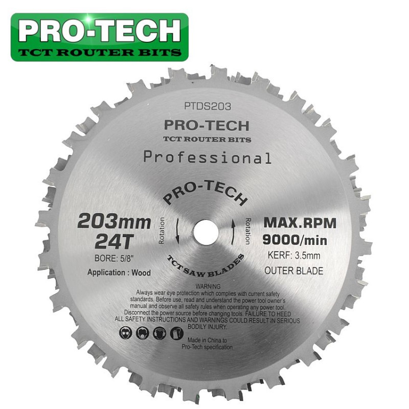 DADO SET 203MM X 15.88 X 24T 4 X 1/8″ 3/32″1/16″ CHIP 27.5MM